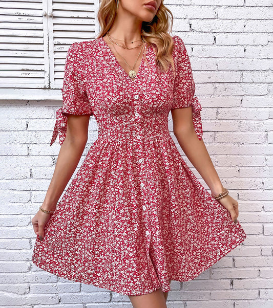 Women Summer Dresses, Floral V Neck Sundress, Wedding Guest Cocktail Party Bodycon Short Sleeve Prom Dress