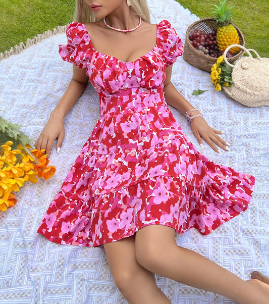 Women Summer Dresses, Floral Sweatheart Neck Sundress, Wedding Guest Party Prom Backless Short Dress