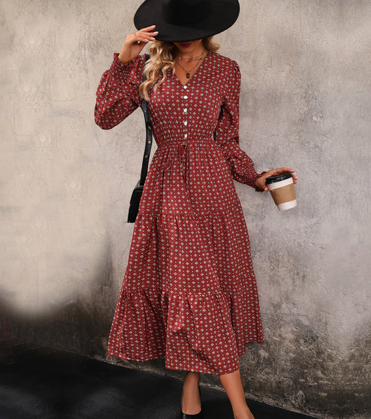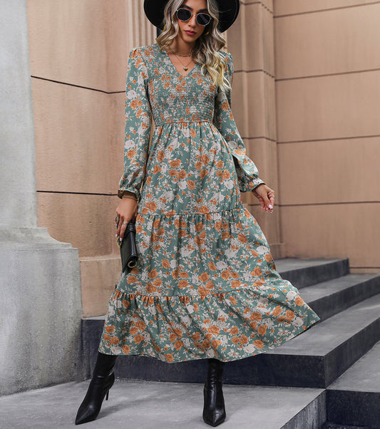 Women Spring Fall Long Dresses, Casual Floral Sexy V Neck Maxi Dress, Wedding Guest Party Engagement Bodycon Dress