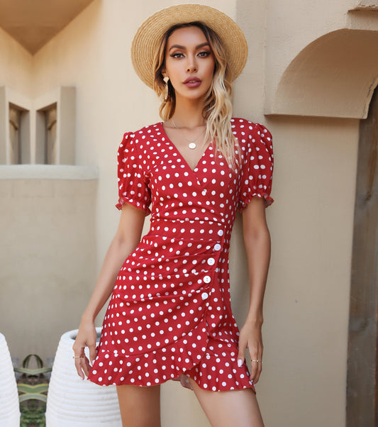 Women Summer Dresses, Floral V Neck Sundress, Wedding Guest Party Prom Puff Sleeve Short Wrap Dress