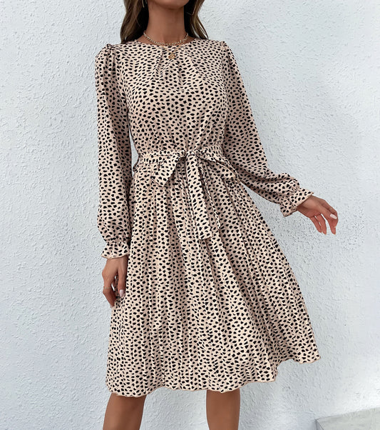 Women Summer Fall Dresses, Smocked Crew Neck Wrap Dress, Wedding Guest Cocktail Party Midi Dress