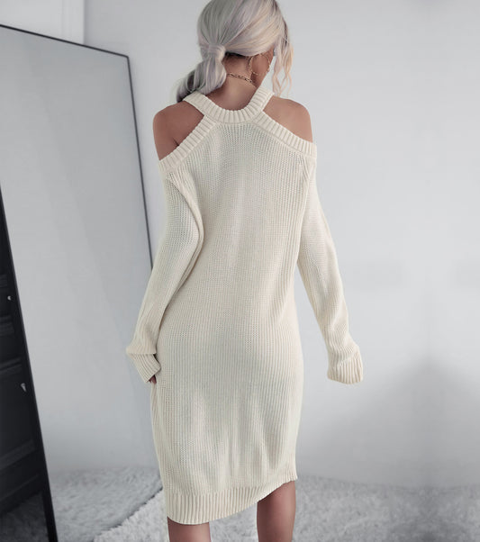 Women Winter Dresses, Pullover Ribbed Knit Halter Neck Sweater Dress, Casual Wedding Guest Cocktail Party Midi Dress